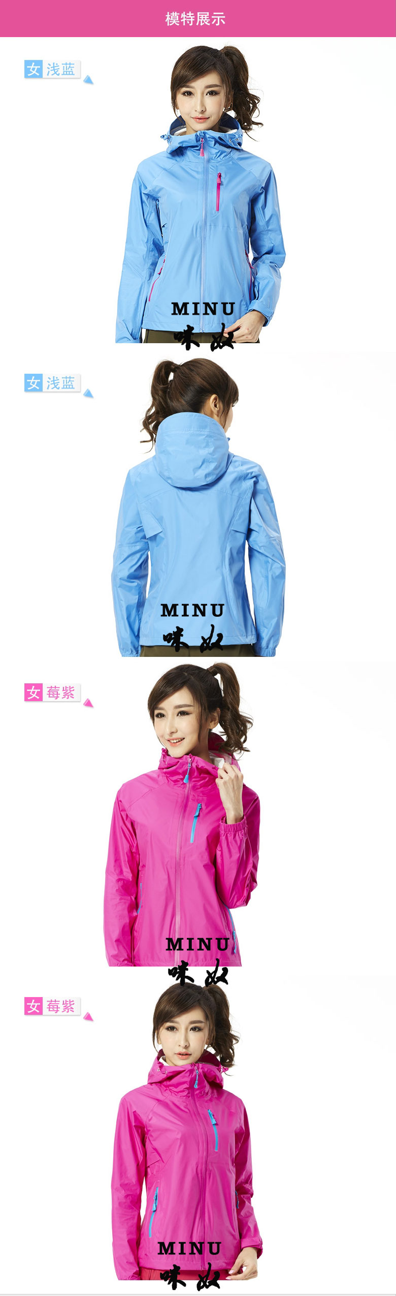 女士藍(lán)色沖鋒衣定做